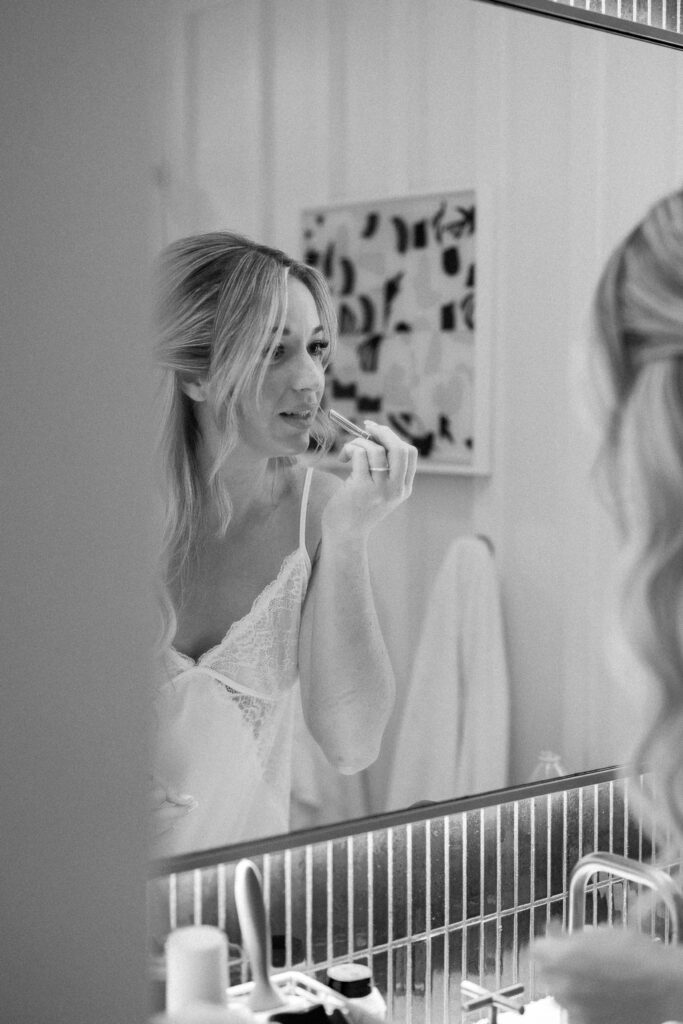 Think ahead about who you want around you. Maybe you want the whole room full while you’re getting dressed. Or maybe you want everyone to step out when it’s time to put on your gown so you can take a breath and enjoy that quiet moment. I’ve seen brides choose to do little first looks with their moms, grandmas or even their siblings before seeing their partner. These moments photograph beautifully and usually end up becoming some of the most emotional memories of the entire day.